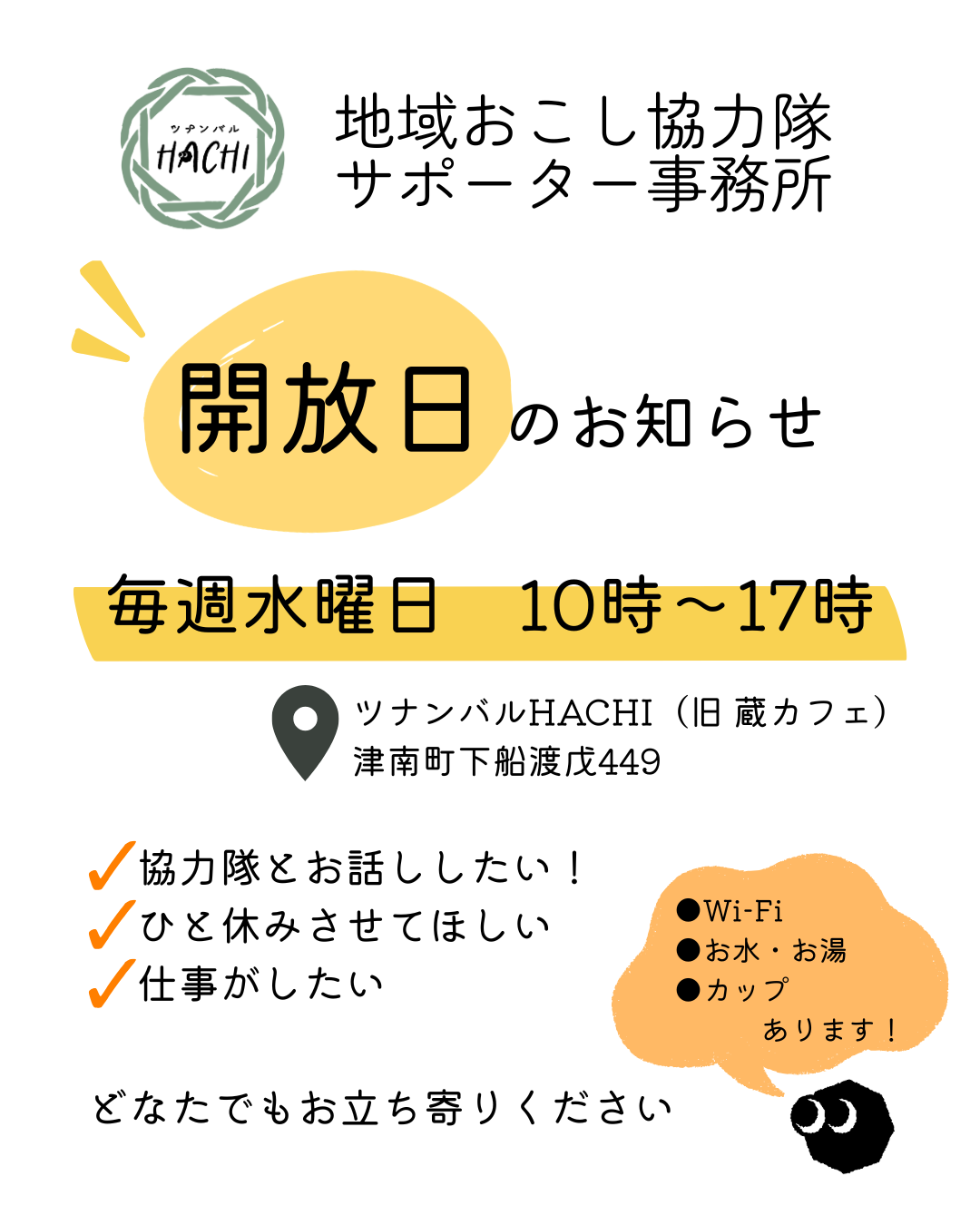 サポーターの長井は、普段「ツナンバルHACHI」をサポーター事務所として活用しています。