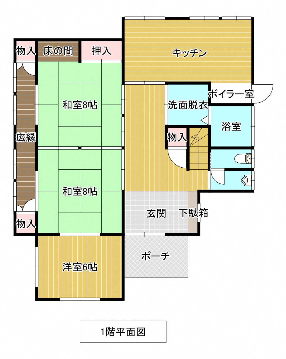 - 1階 / 和室(8)畳 (8)畳、台所、風呂、トイレ、洋室(7)畳